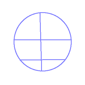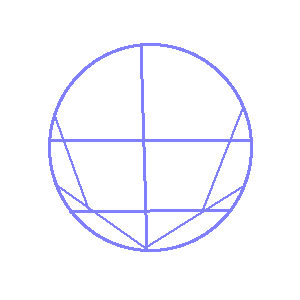 4)丸の中に中心線を引く(目鼻口の位置決めなので、ななめ向きの場合は縦中央線を鼻の位置にするなど)